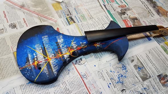 Kannst du dir ein entsprechendes Kunstwerk auf einer meiner E-Geigen (schwarz) vorstellen?“