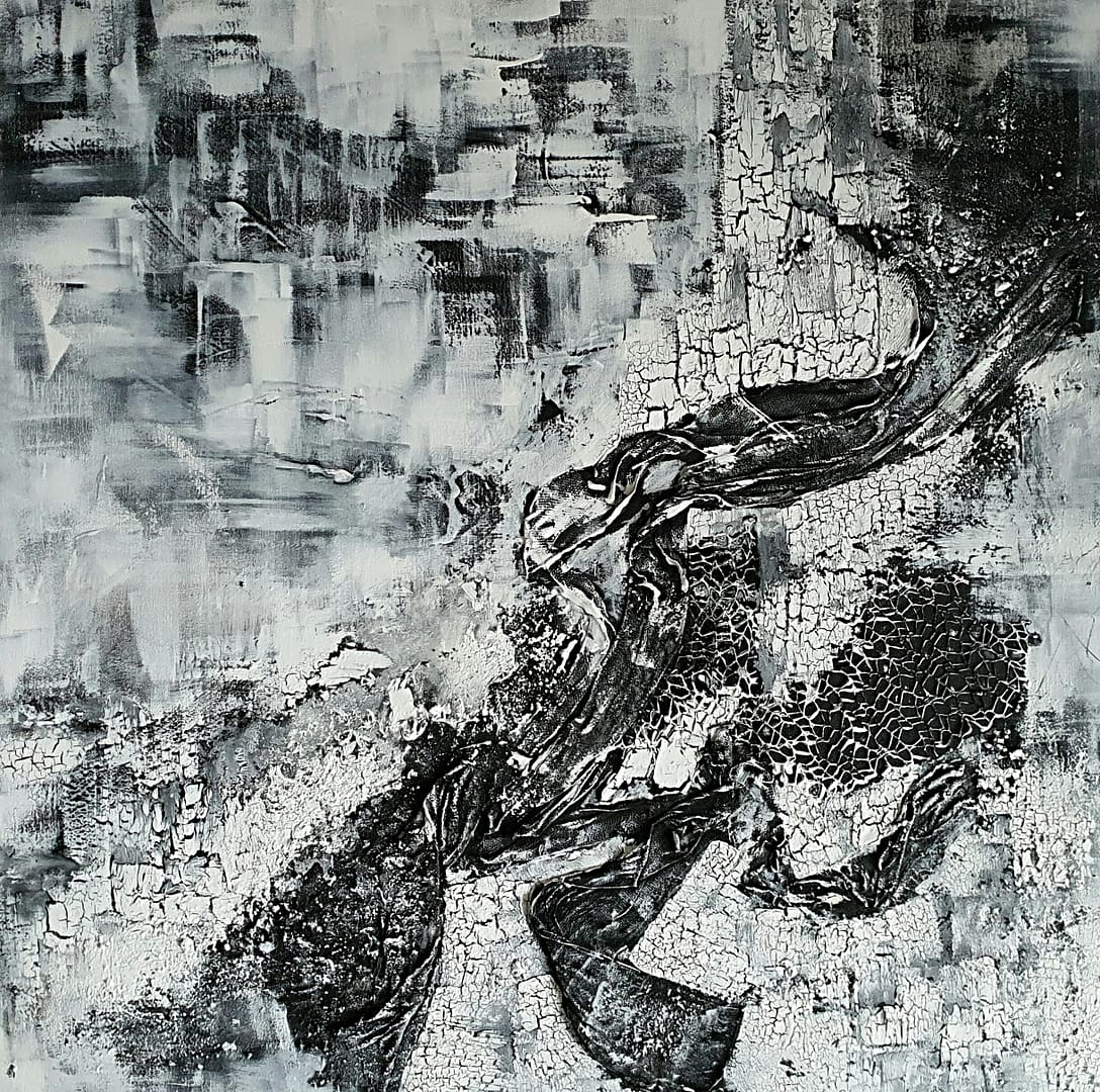Lange Zeit habe ich mich nicht getraut – ein Bild ausschließlich mit Schwarz und Weiß zu malen. Mein Metier sind ja kräftige Farben, doch juckte es mich in den Fingern es zu tun.