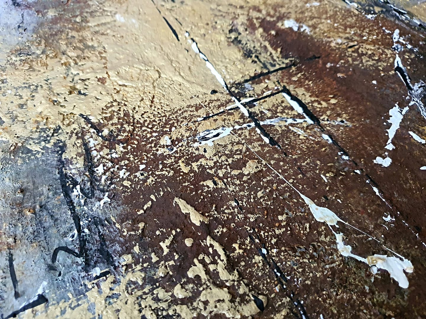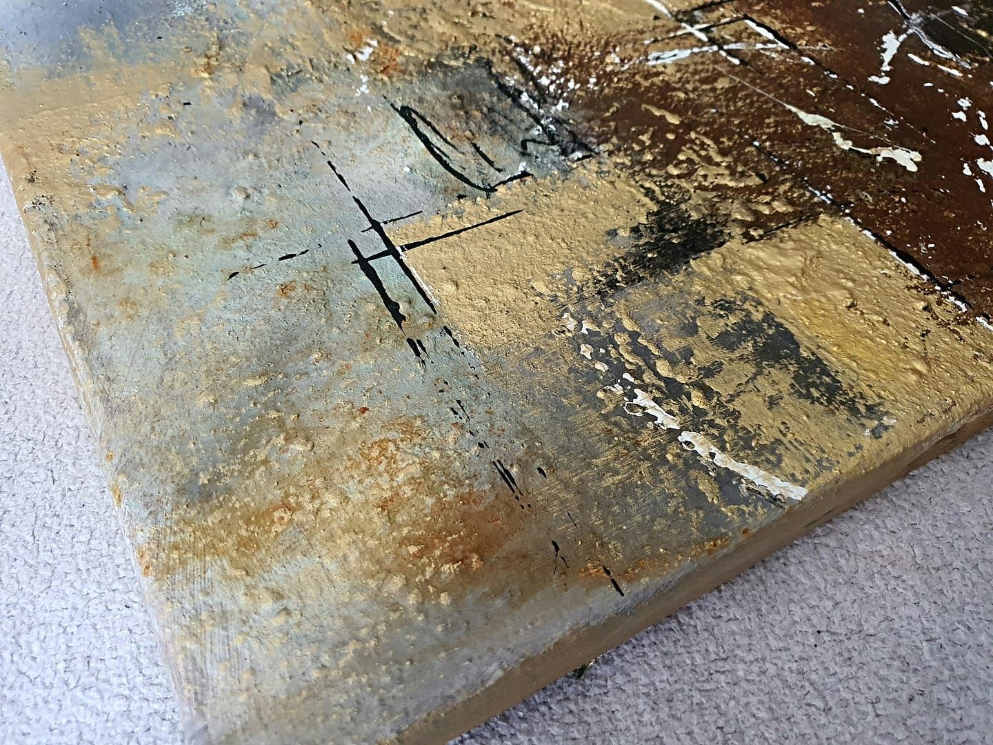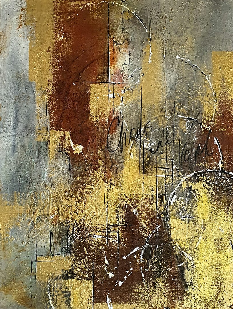 Materialien: Acrylfarben Eisenoxid, Edelrost, Goldpigmente, beige, weiß,