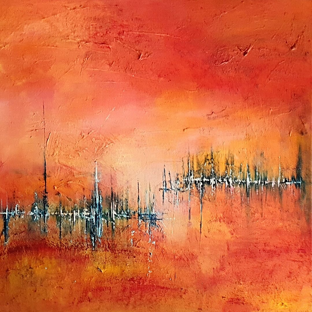 - Materialien: Acrylfarben höchster Qualität, die sich durch eine exzellente Farbbrillanz und Lichtechtheit auszeichnen. Rot Gelb, Orange, Schwarz Weiß, Blau Cremeweiß, Pfirsich, Orangerot