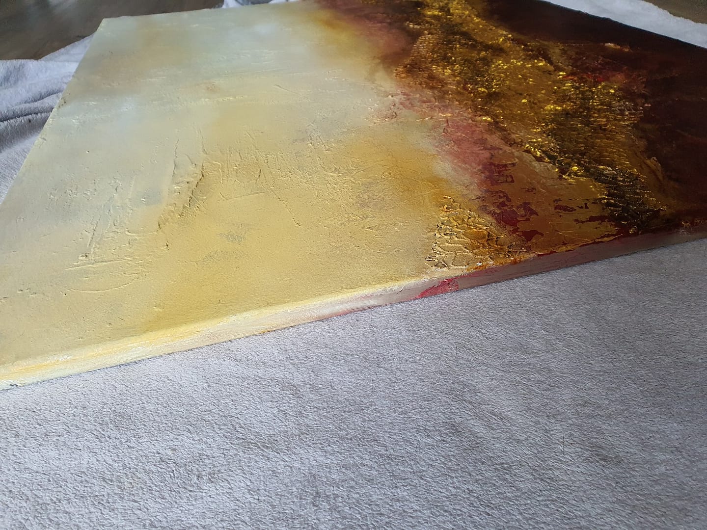 - Für dieses Kunstwerk setzte ich Acrylfarben, Pasten und Strukturmaterialien ein.