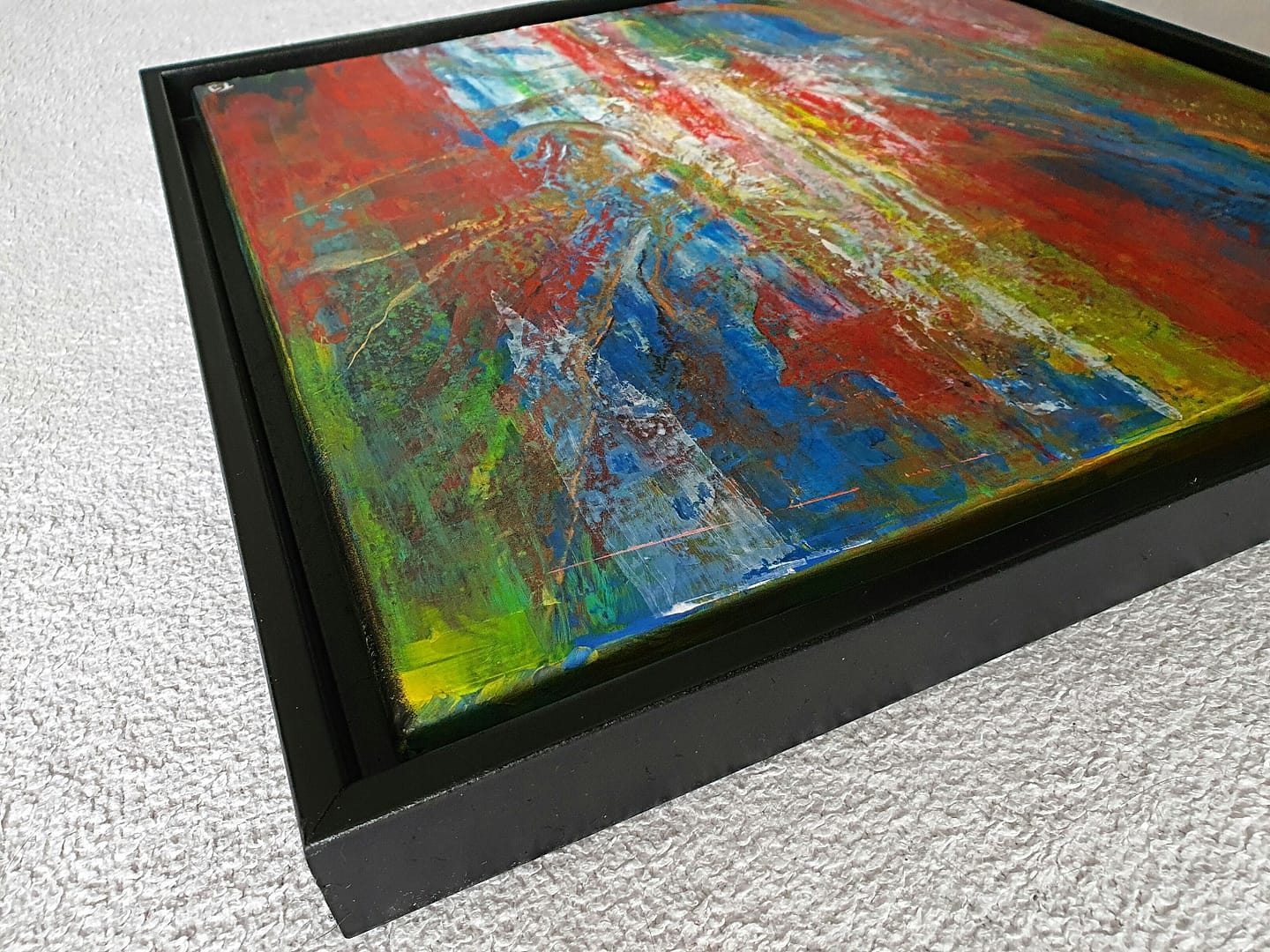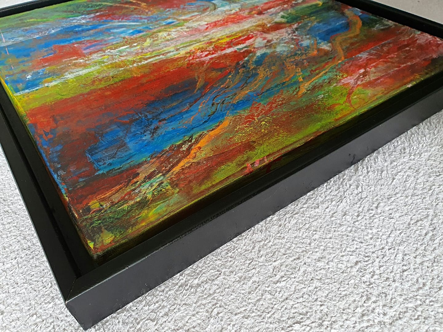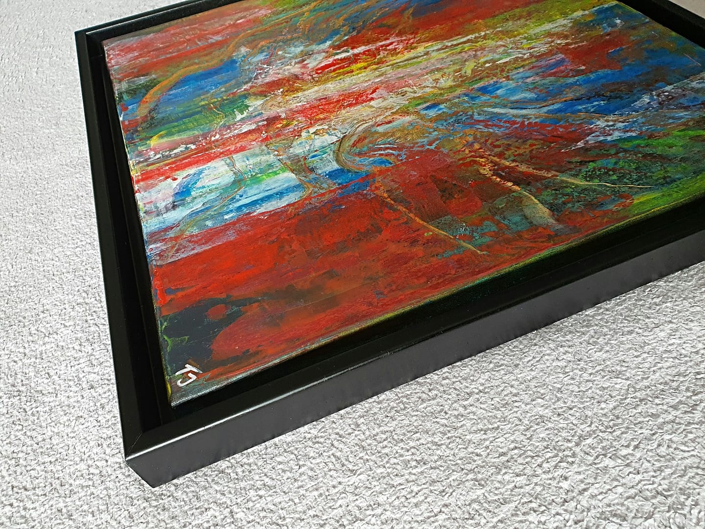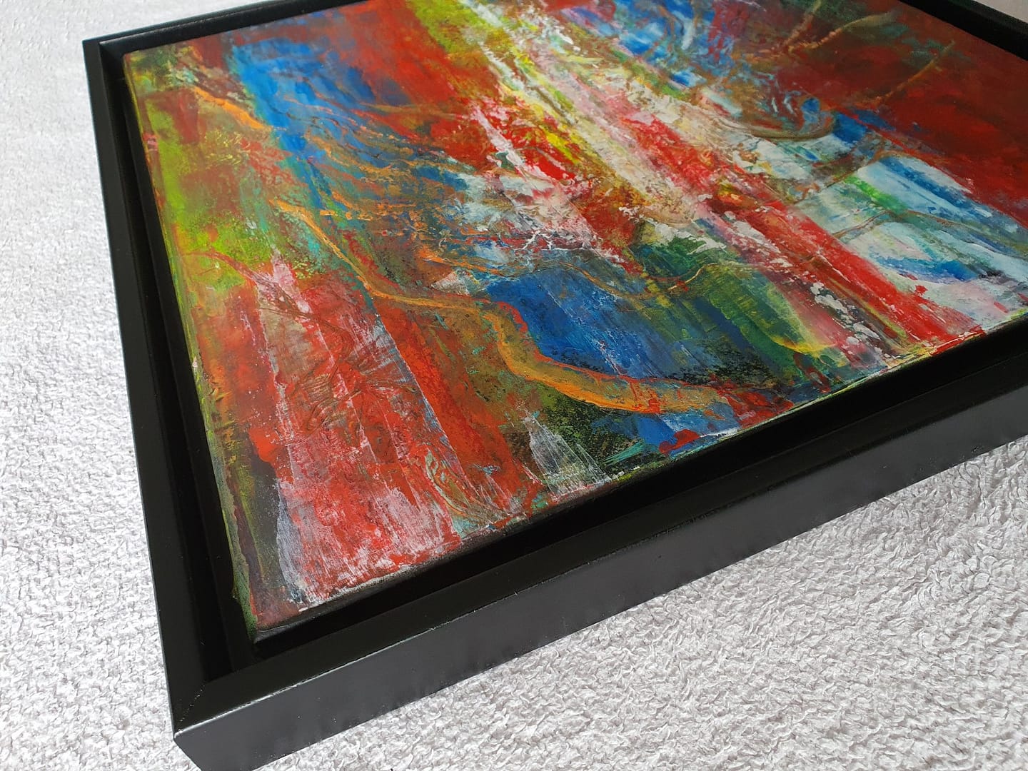Original-Gemälde, abstrakt, montiert im matt-schwarzen Schattenfugenrahmen