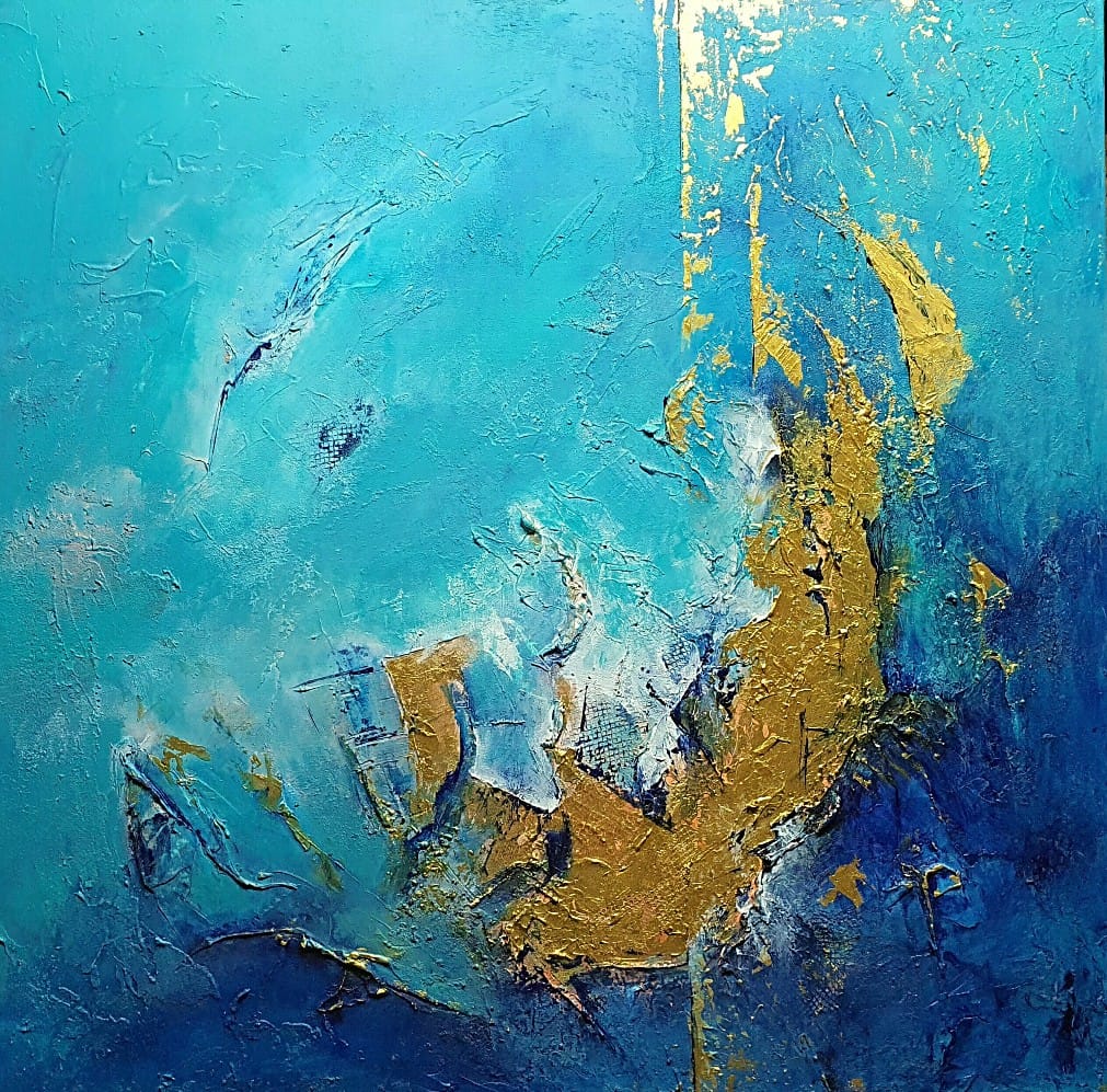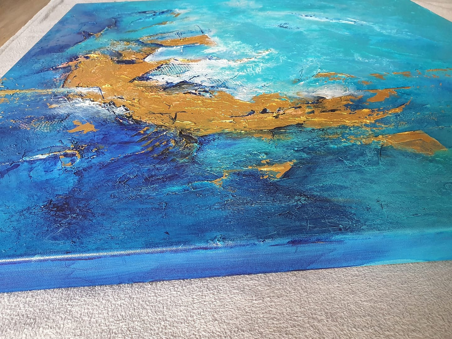 Das wunderbare Blau des Meeres und die teils goldig anmutenden Häuser auf Malta standen Pate für dieses Kunstwerk.