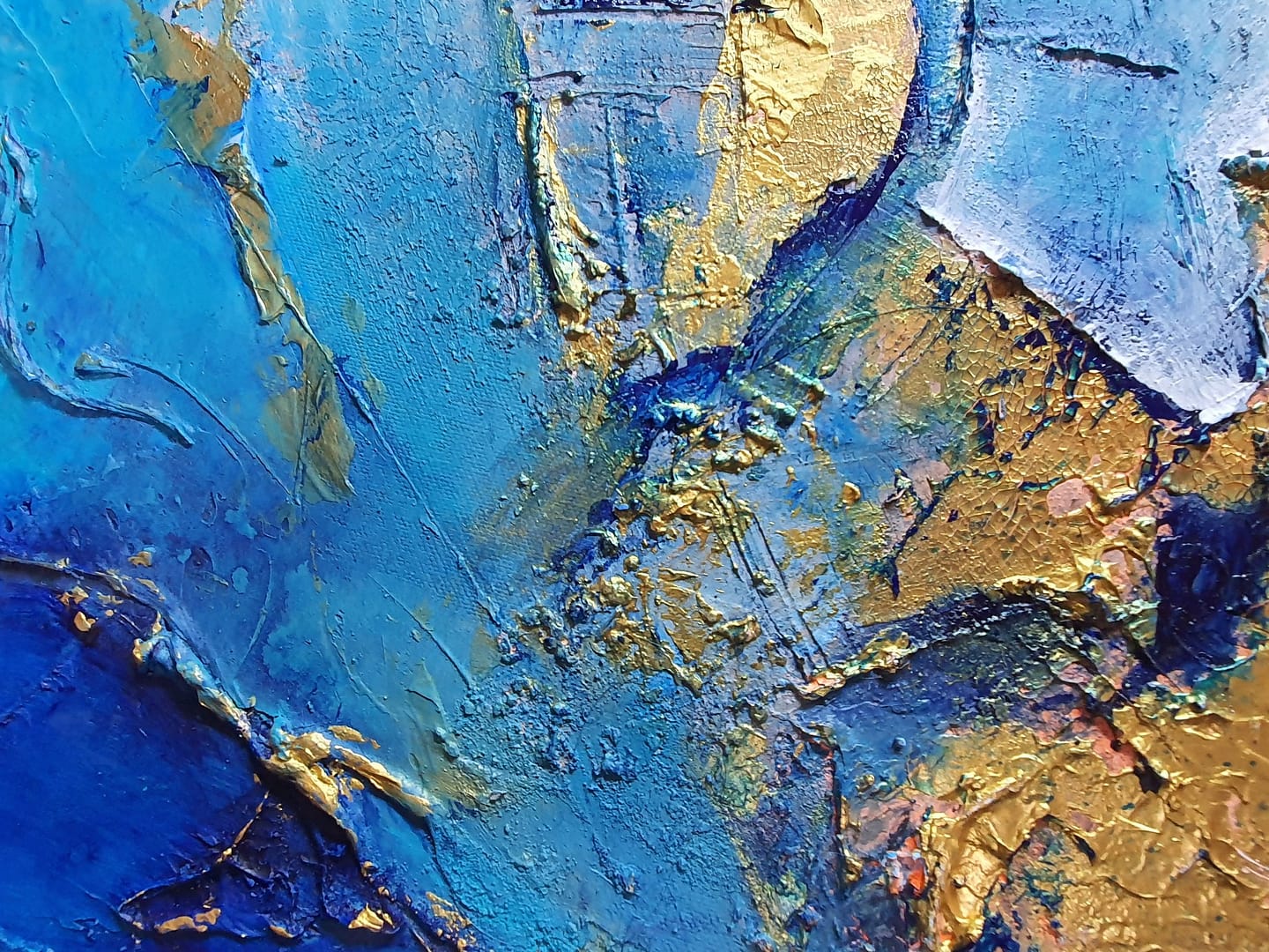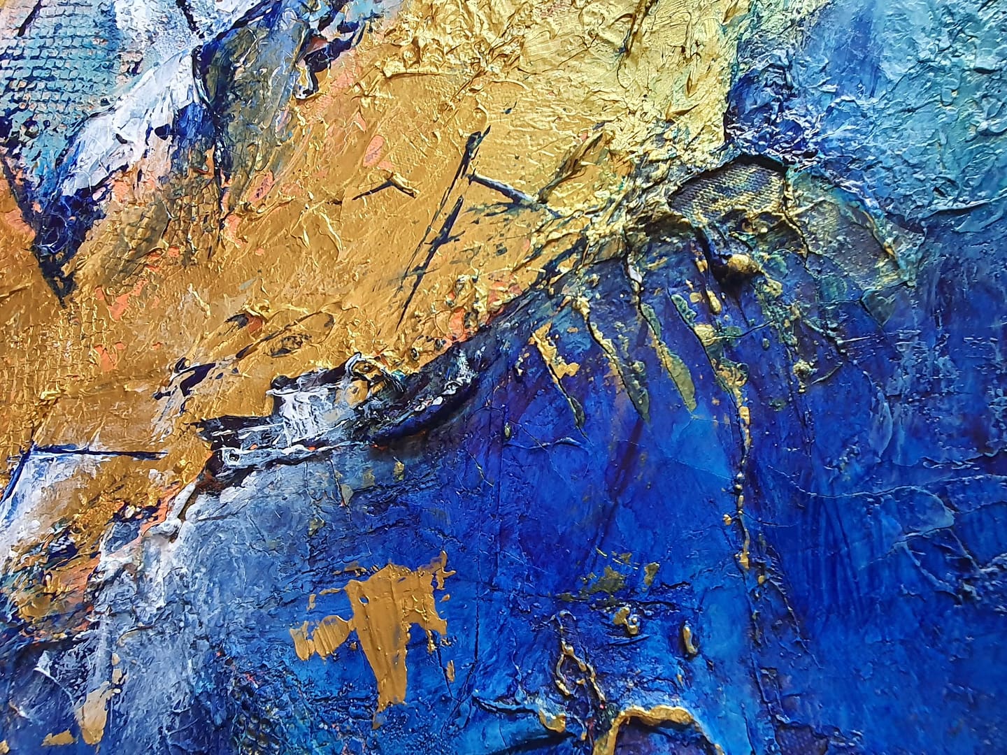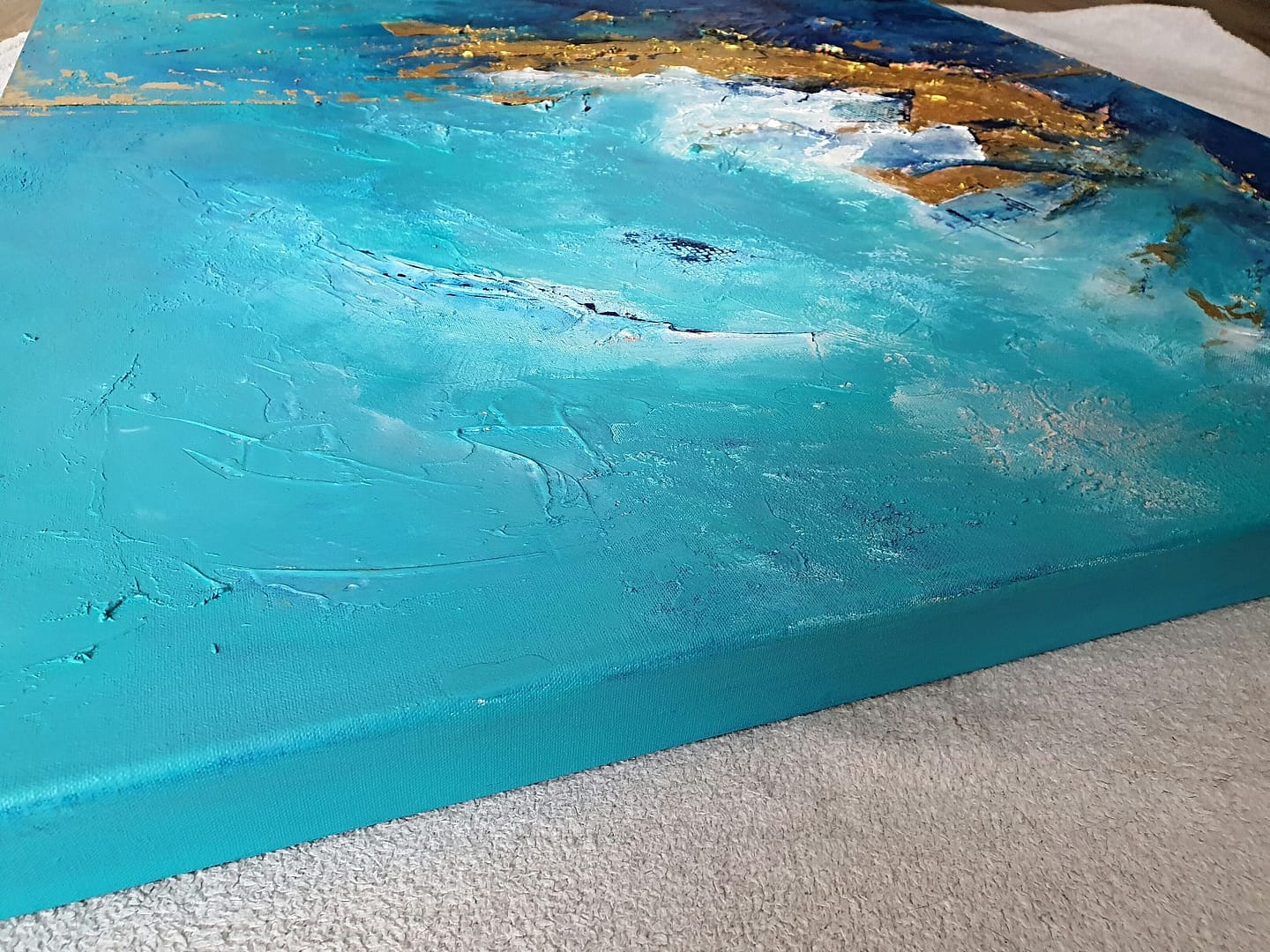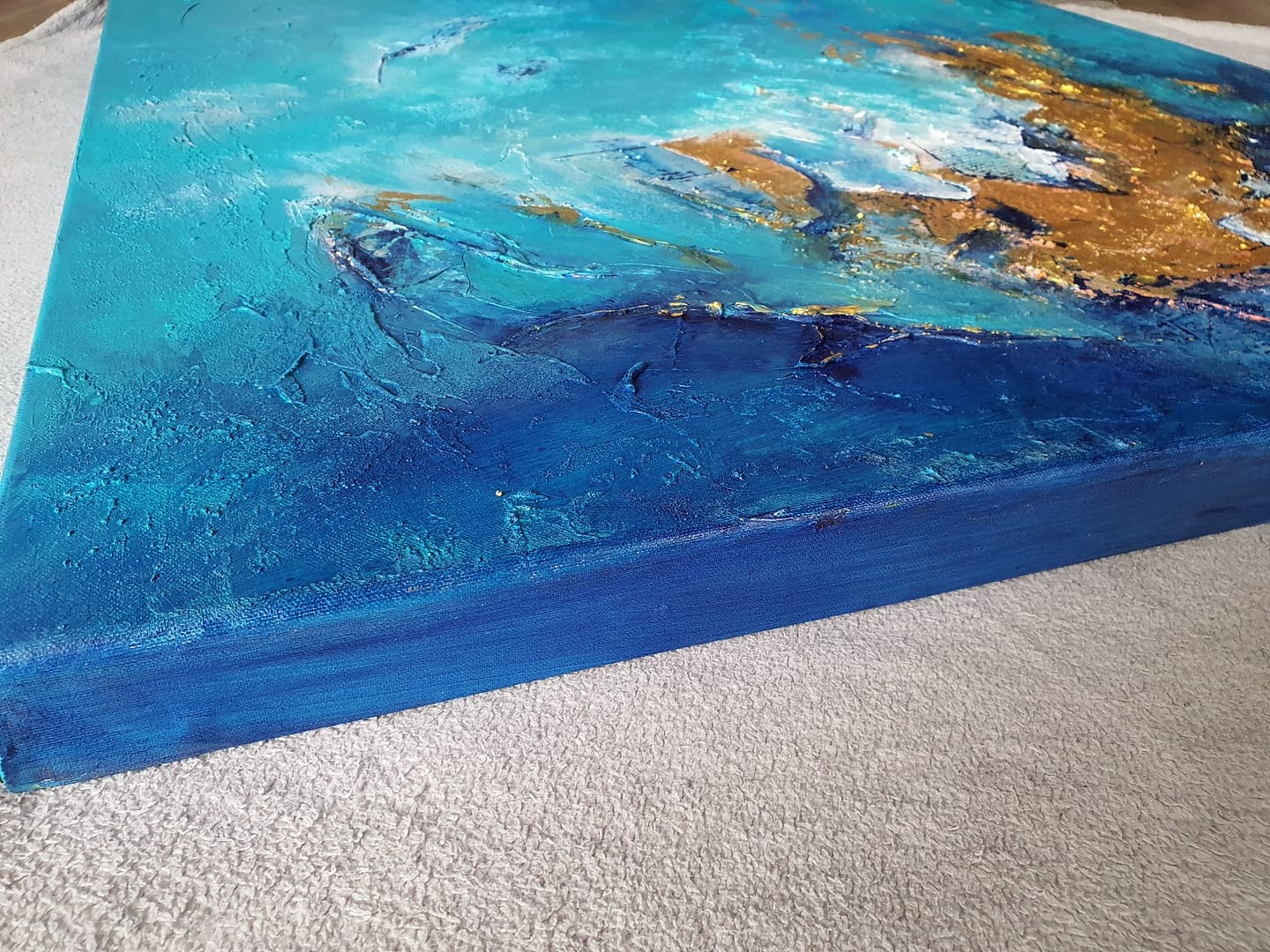 - Materialien: Acrylfarben/-pasten Blau , Türkis, Gold