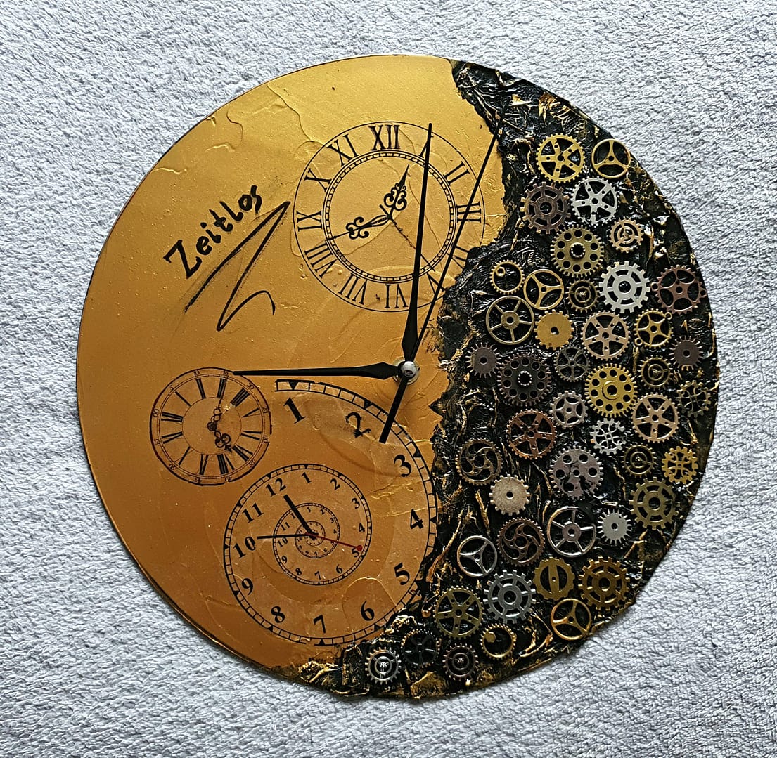 Zifferblatt mit Struktur und Metall-Zahnrädern